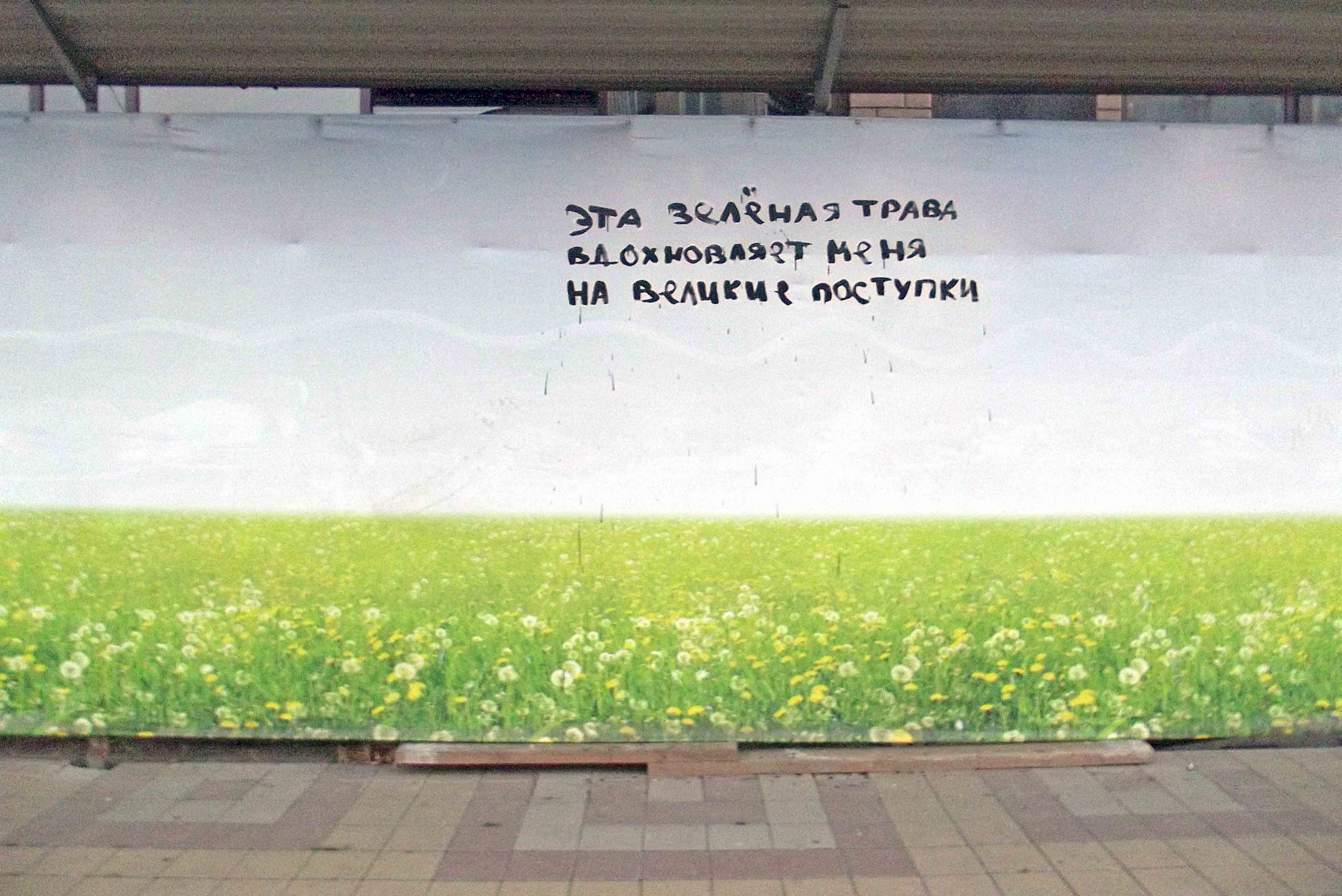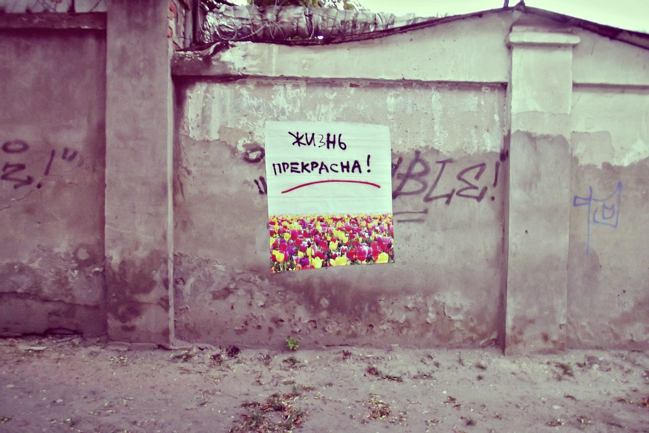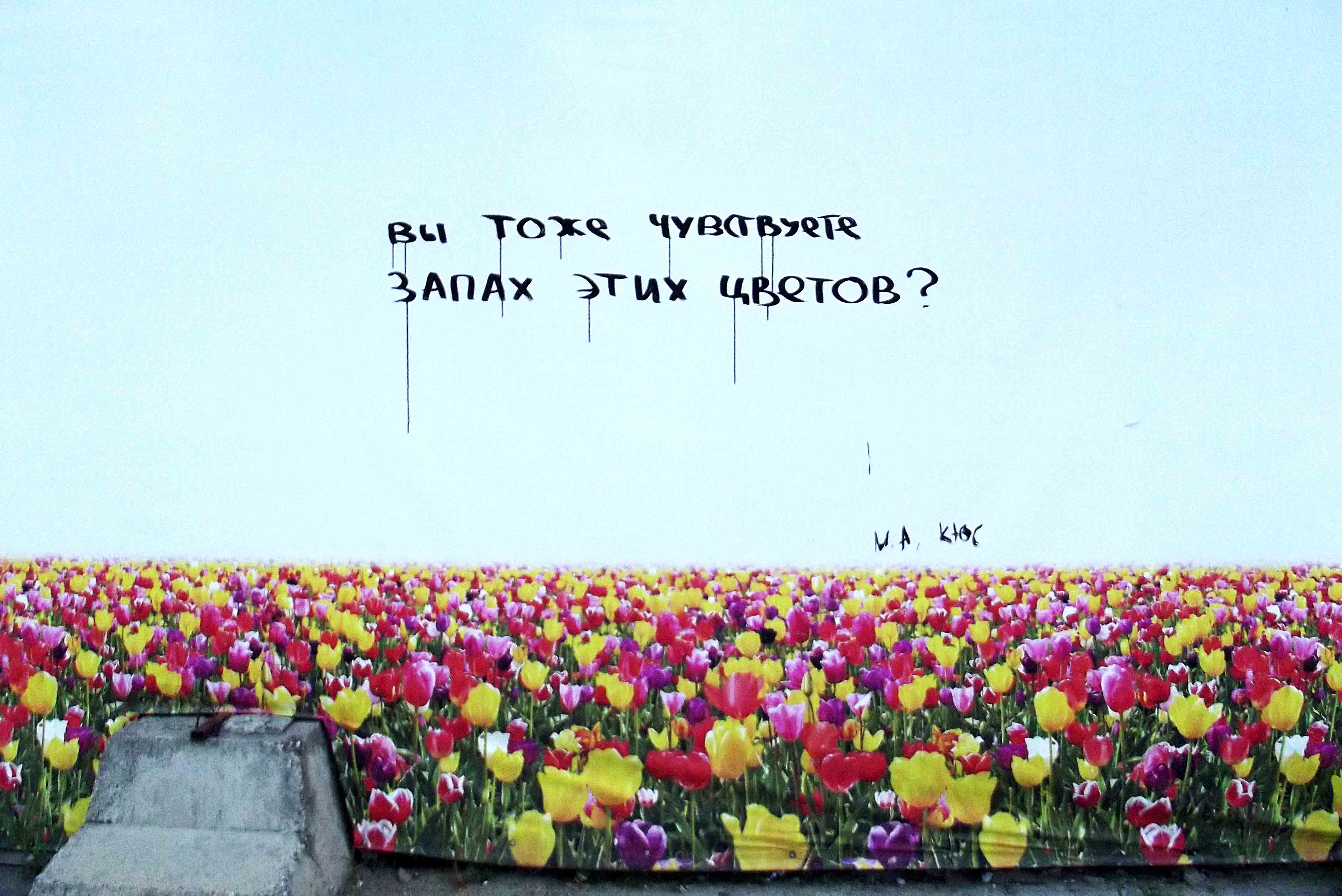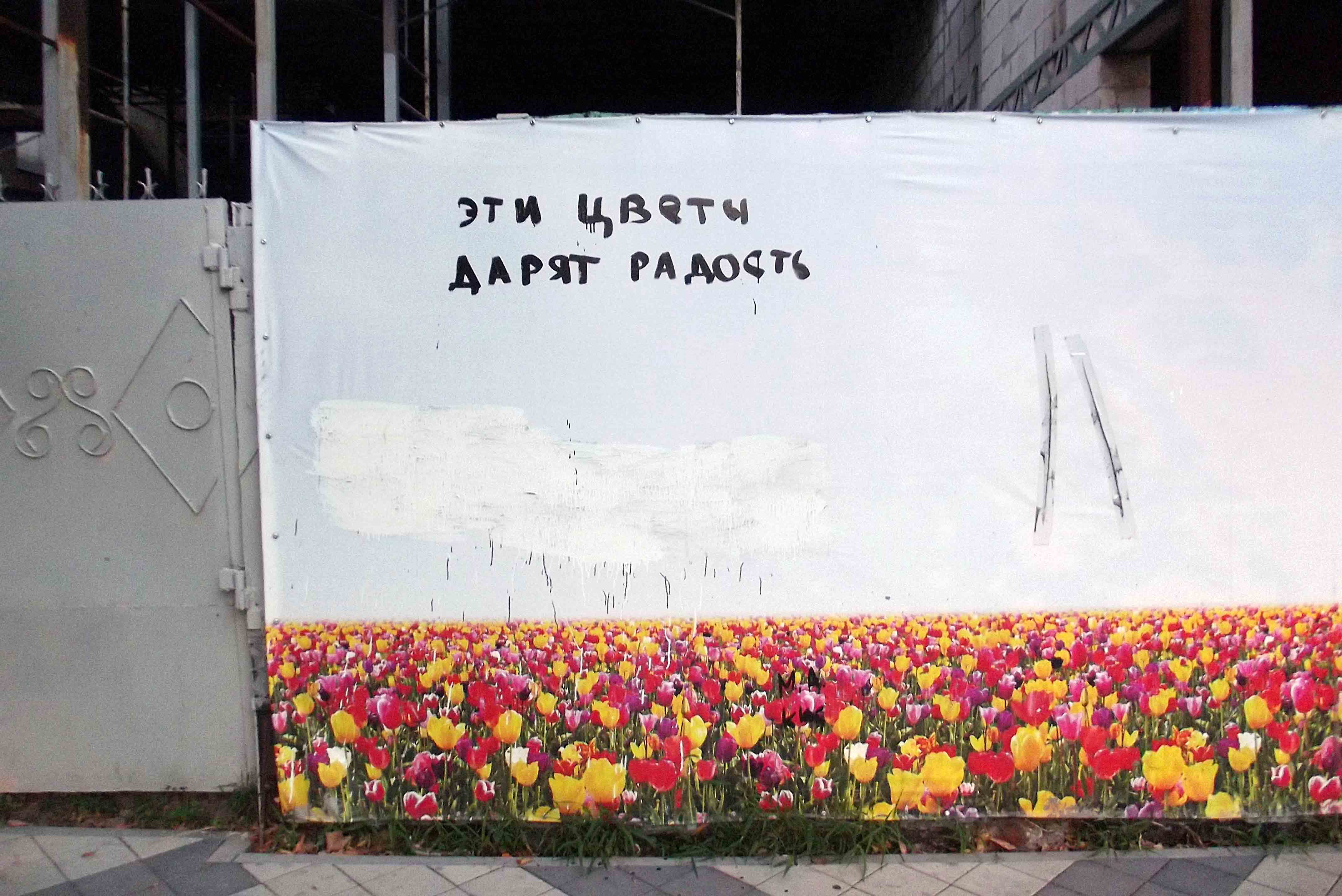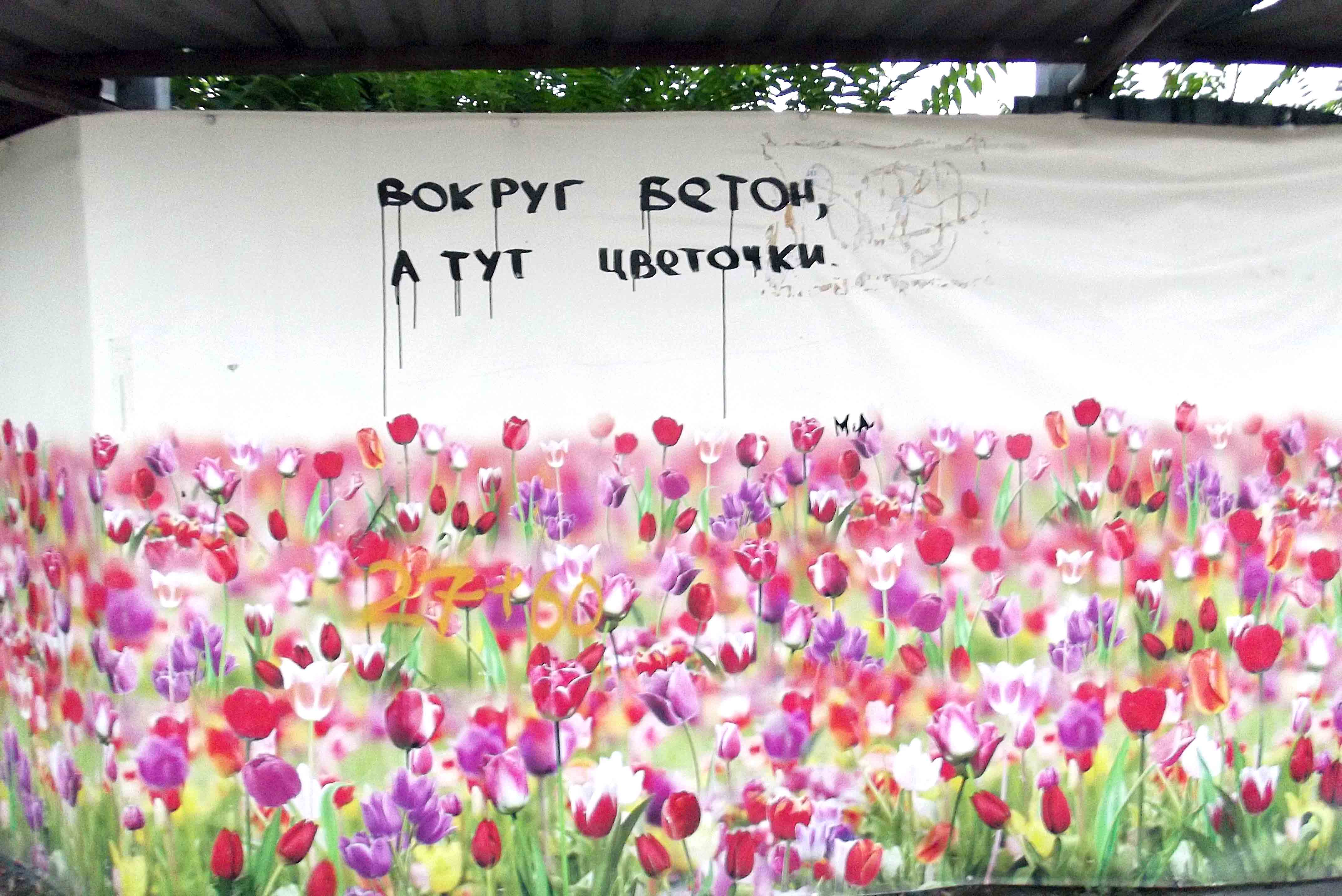 Construction fences and other unsightly things in our city have been covered up with banners with flowers, so a series of works on this theme was born. The series consists of six street works